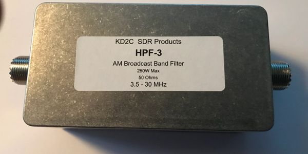 The HPF-3 is a high pass filter designed to reduce the RF signal levels below 3.5 MHz. The HPF-3 is effective in reducing or eliminating interference caused from nearby AM broadcast transmitters. The HPF-3 will strongly attenuate signals below the 80 meter amateur band.